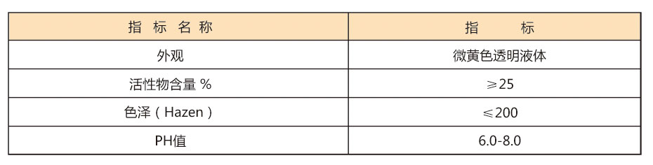 急性經(jīng)口毒性試驗;受試物對雌雄小鼠急性經(jīng)口LD50值及95%可信限分別為3.16(2.05-4.88)、4.30(2.95-6.26)g/kg,屬低毒級。 急性外用毒性試驗:受試物對錦鯉幼魚96小時LC50值為2.27x10-6,屬低毒級。 質(zhì)量指標(biāo):活性物含量≥25%, 色澤(Hazen)號≤200,PH值(1%水溶液)6-8。